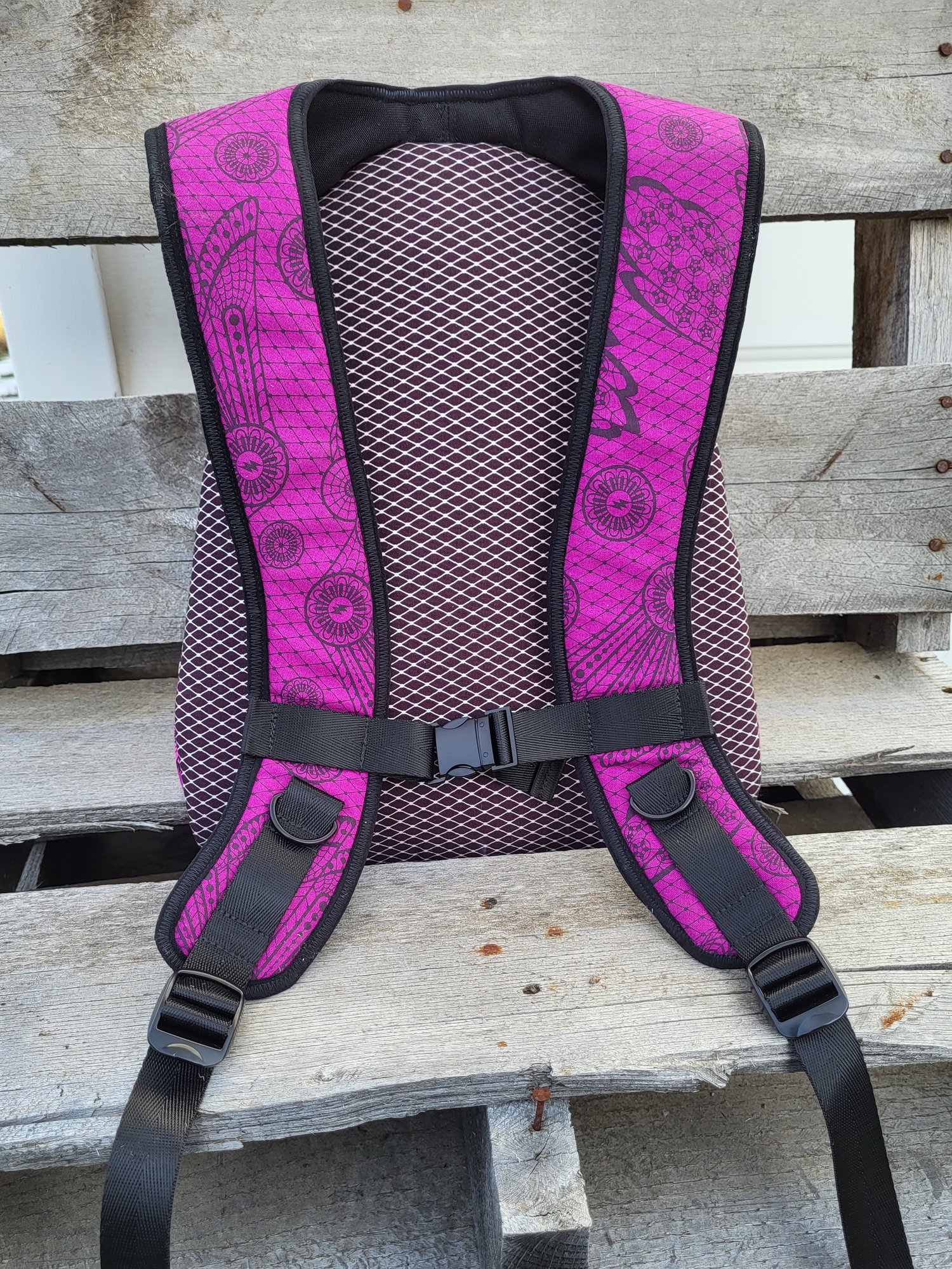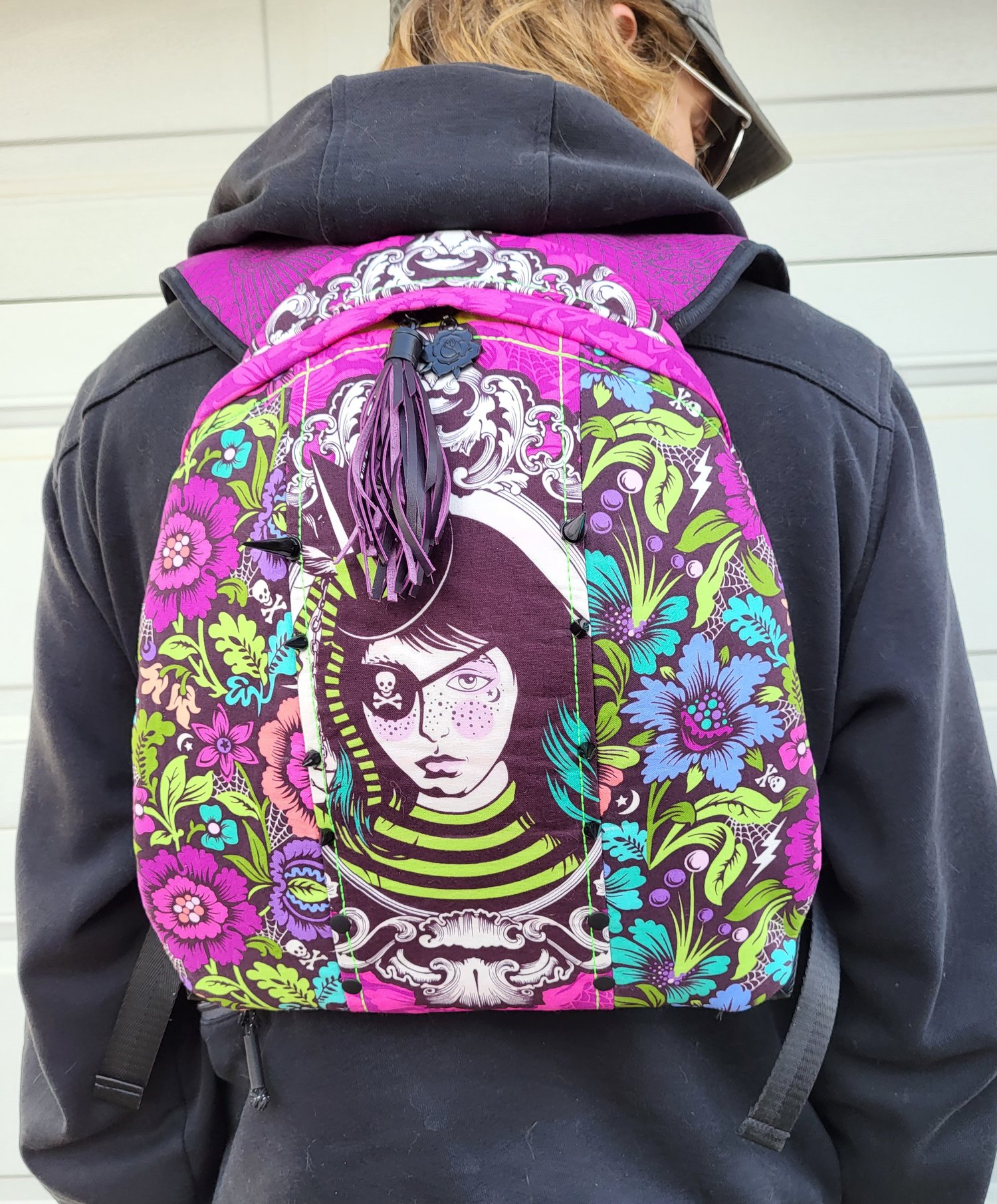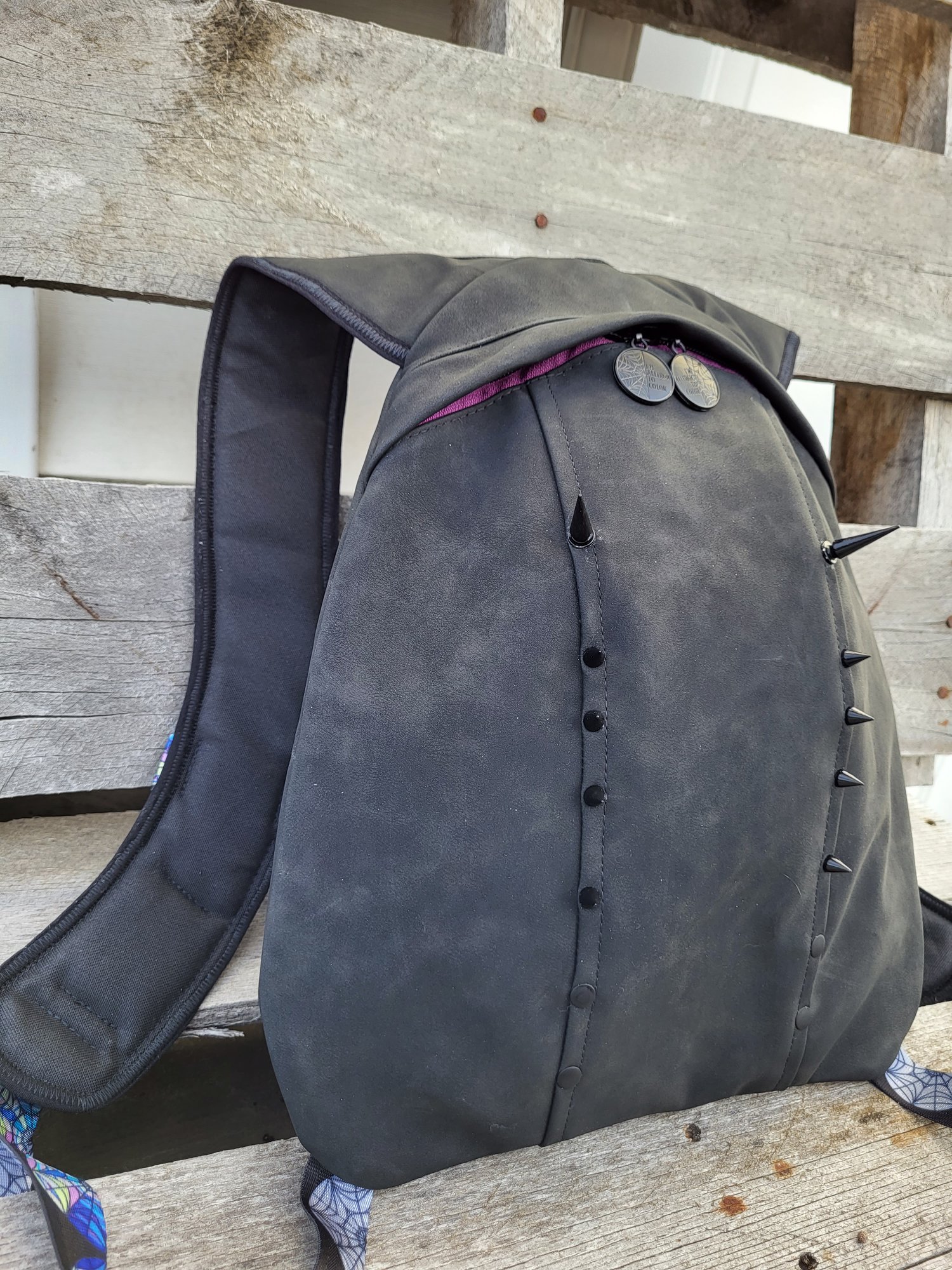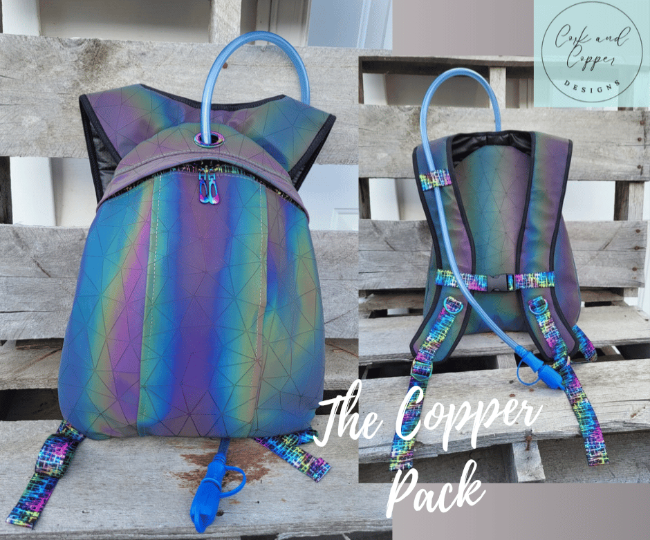 The Copper Pack is a great confident sewist project. This sleek ergonomic design can be customized with hardware, such as spikes, rivets, or any other bag bling! There are also options for an inside zipper pocket, mesh slip pocket, device holder elastic, key lanyard, outer grommet, and inside lobster clasp. There are instructions on how to make it a G-tube Feed Pack, for those that need a G-tube Feed Pack, and instructions on how to make it a Hydration Pack, for those who want to stay hydrated during outings such as cycling and backpacking, or at events such as festivals! The Copper Pack is incredibly versatile and useful! The Copper Pack can hold up to 2L Hydration Bladder.