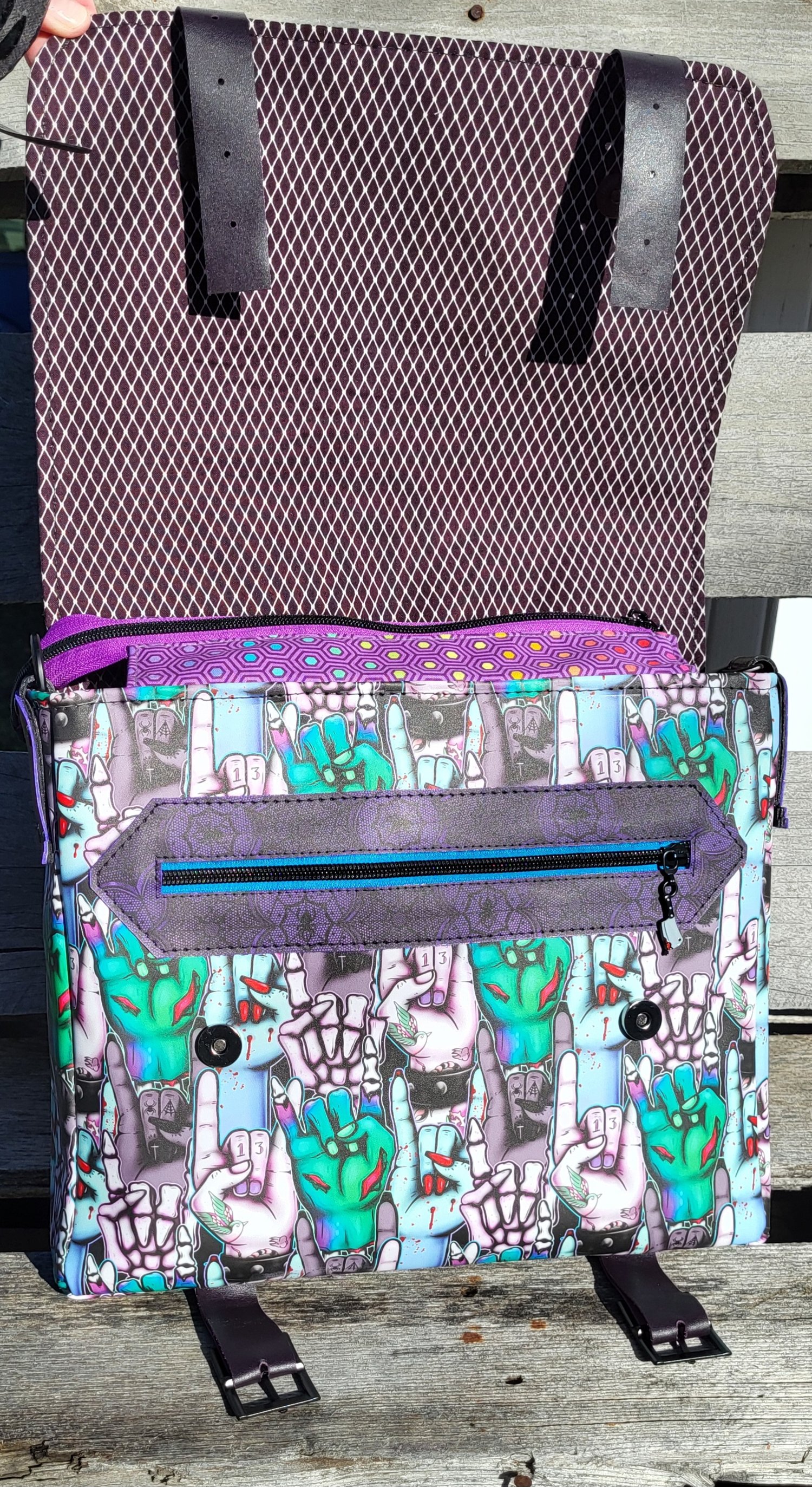 The Moonstone Messenger Bag is a great confident beginner/intermediate sewists project. This Messenger Bag has the classic lines that we all love. A bit gothic, this bag leaves much to be customized. With multiple flap closures and material options, this can be extremely high end, or utilitarian. The included graveyard zipper facing is a fun option to goth it up a bit! There are many options for this Bag; top zipper closure, 3 zipper pockets, water bottle/coffee cup holder, back slip pocket with magnet closure, additional interior I-Pad/ChromeBook/Reader slip pocket, 8 card slots, and even a key lanyard. The Moonstone Messenger Bag is incredibly versatile and useful!