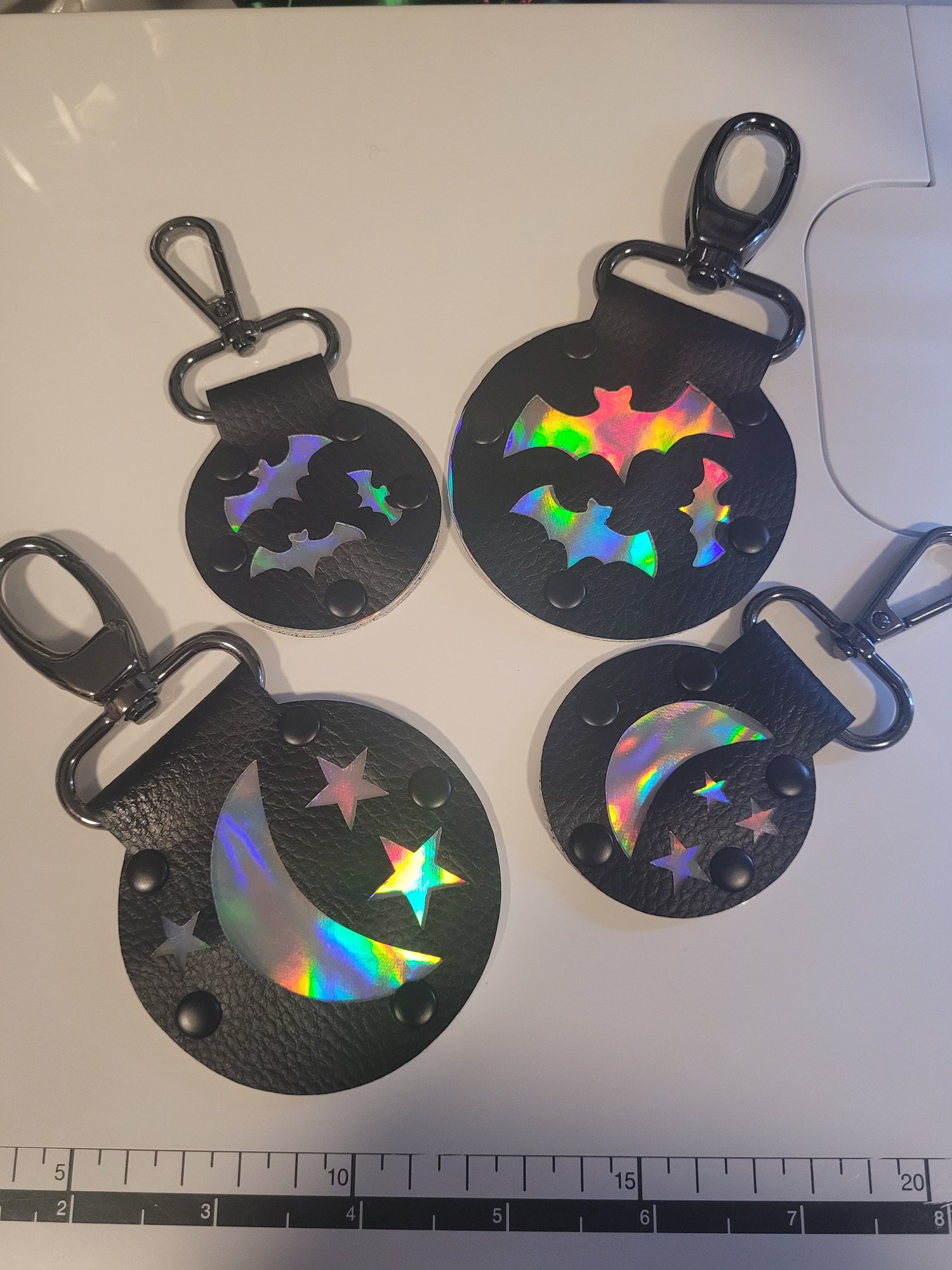The Strap Ends and Hardware Strap Ends come on 1”, 1.5”, or 2”. This makes them perfect for use with 1”, 1.5”, 2” hardware or straps, and can also be added to any bag. These can be used as keychain or lanyards as well!
