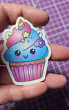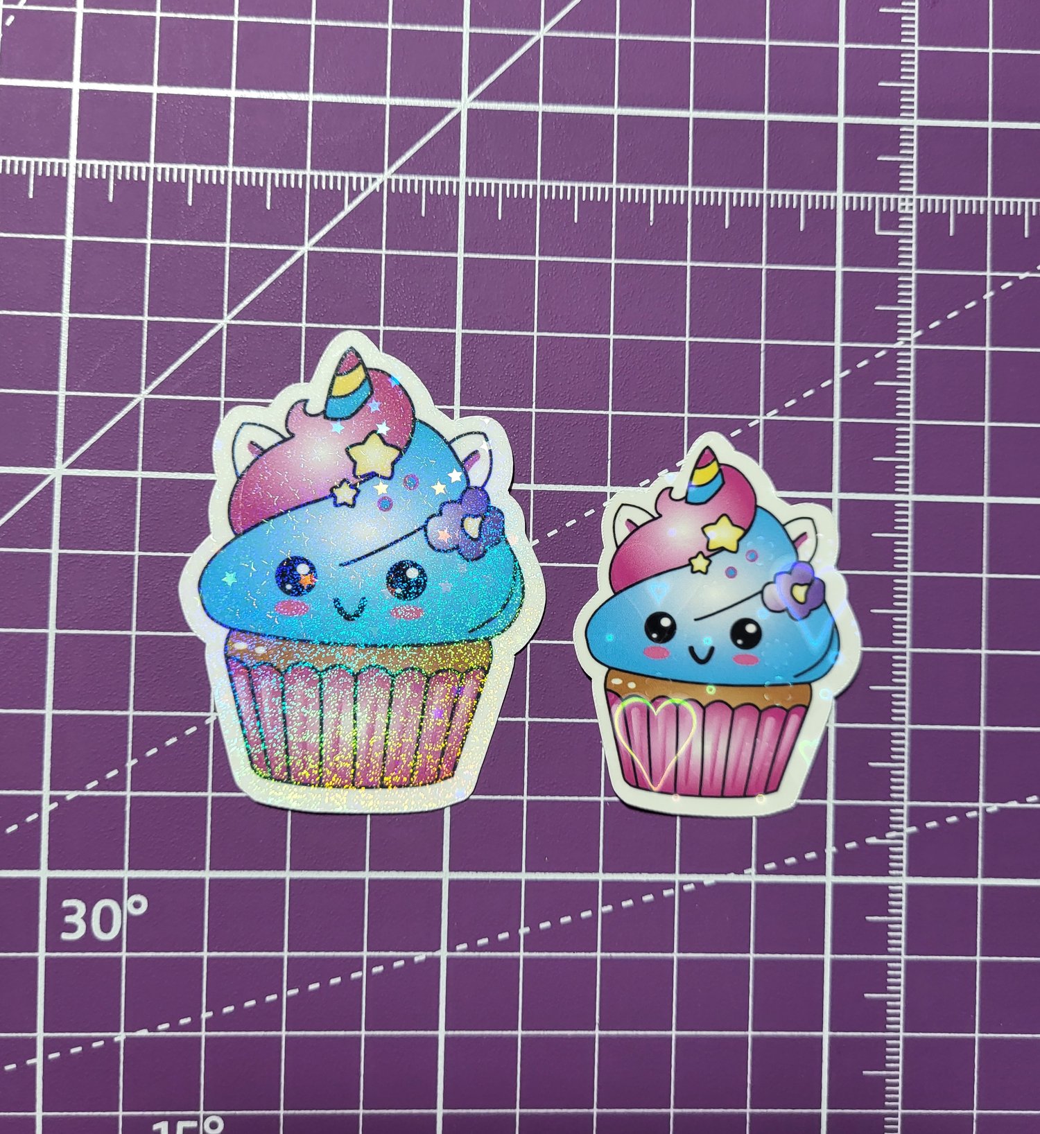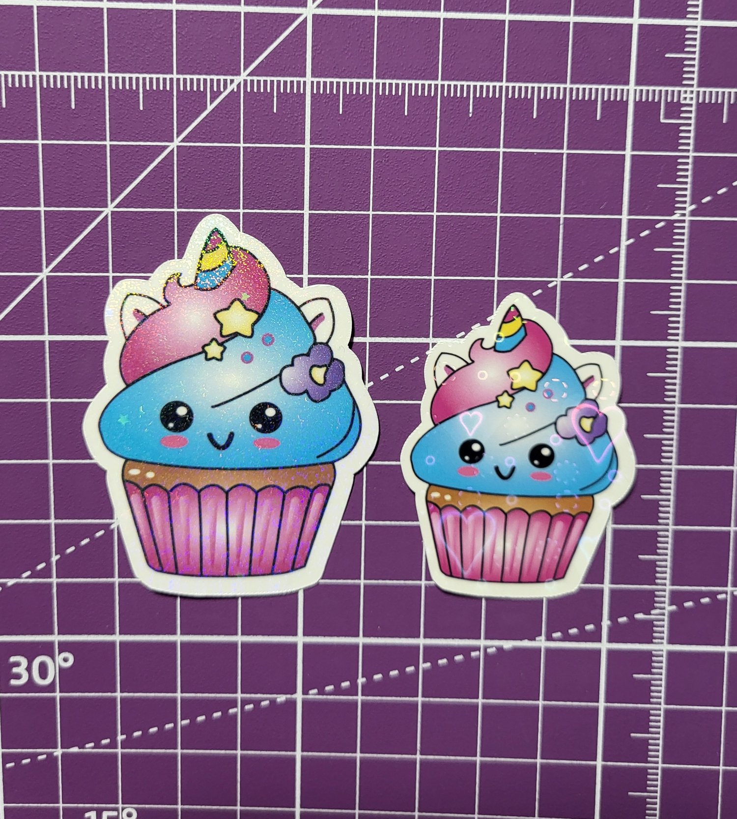 Pink/Blue Swirl Unicorn Cupcake Sticker with Holographic Vinyl